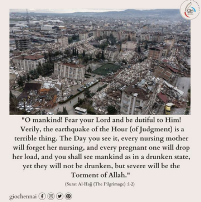 With the Earthquake striking southern and central Turkey and northern and western Syria, it is indeed our duty to remind the society the signs Allah has sent and to humble ourselves. Hence, posters were made to meet the need of the hour.
